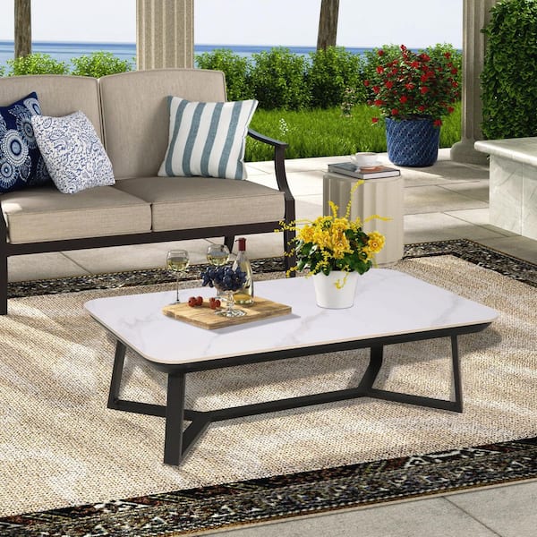 STIPA 51 in. Aluminum Outdoor Coffee Table with Sintered Stone Tabletop