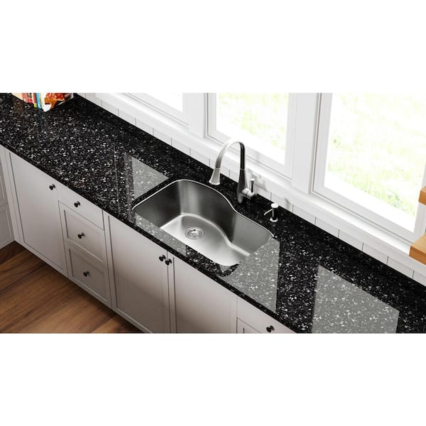 Belmar Dual Mount 18-Gauge Stainless Steel 33 in. 2 Hole Single Bowl Kitchen Sink with Grid, Drain, Faucet and Soap Pump