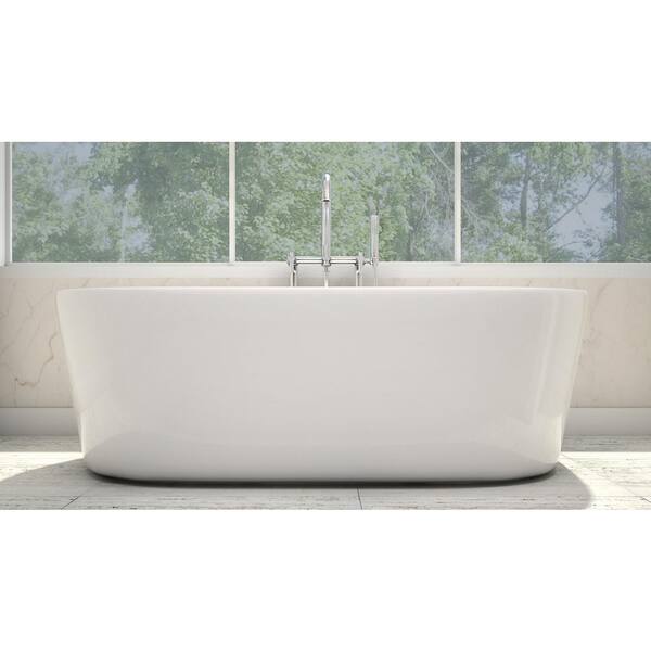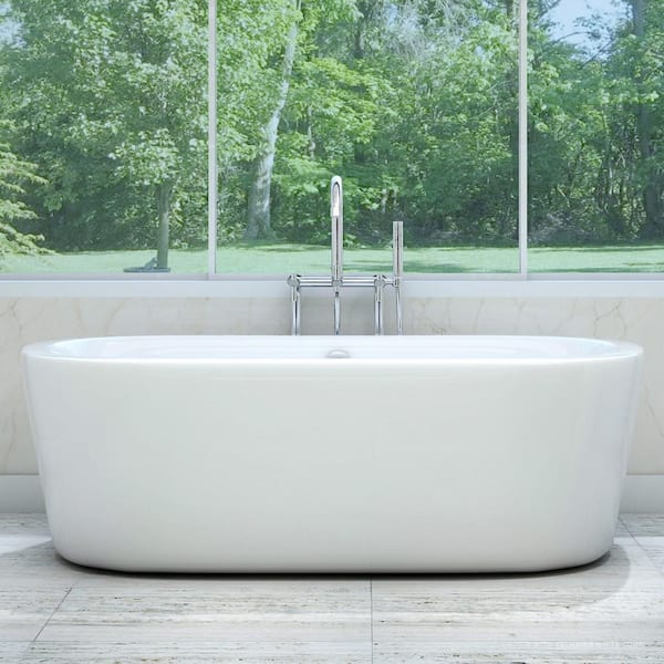 Newcastle 67 in. Oval Freestanding Flatbottom Bathtub in White, Drain in Polished Chrome