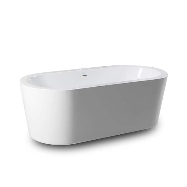 Newfield 66.5 in. x 31 in. Acrylic Oval Freestanding Soaking Bathtub with Center Drain in White