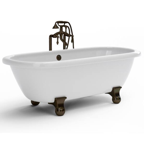 W-I-D-E Series Dalton 60 in. Acrylic Clawfoot Bathtub in White, Cannonball Feet, Floor-Mount Faucet in Oil Rubbed Bronze