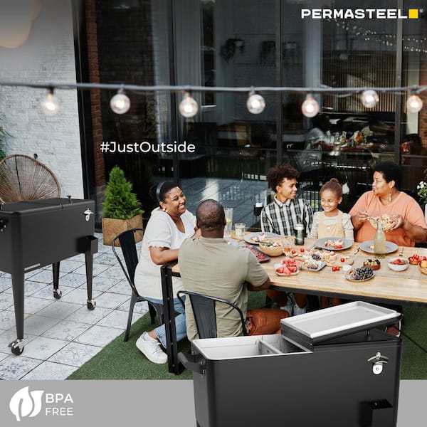 Party Cooler, 80-qt. Capacity, Divider Cooler, Rolling Ice Chest for Entertainment, Matte Black