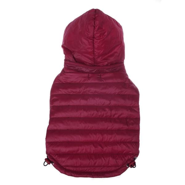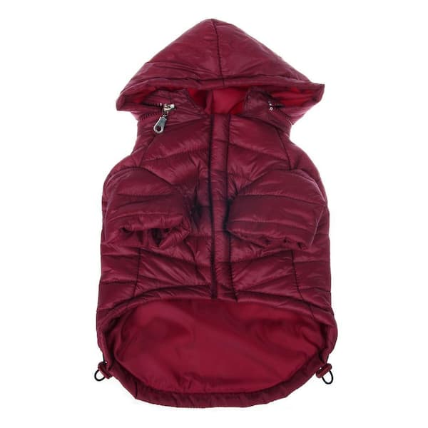 Large Burgundy Red Lightweight Adjustable Sporty Avalanche Dog Coat with Removable Pop Out Collared Hood