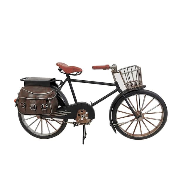 Black 12 x 3 x 6 in. Decorative Metal Model Bicycle with Brown Bags