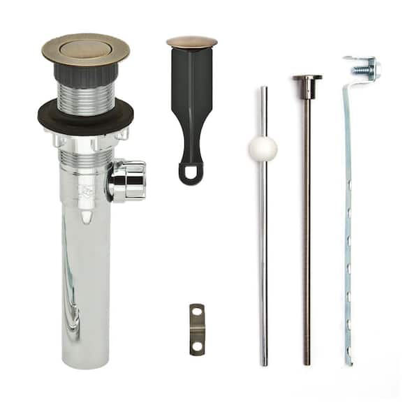 Bathroom Pop-Up Drain with Ball Rod, Chrome ABS Body w/o Overflow, 1.6-2" Sink Hole, Antique Brass