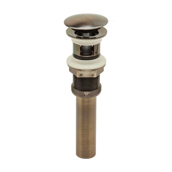 DecoDRAIN Push Open/Close Pop-Up Drain, ABS Body w/ Overflow, 2.5" Cap, 1.6-2.2" Sink Hole, Antique Brass