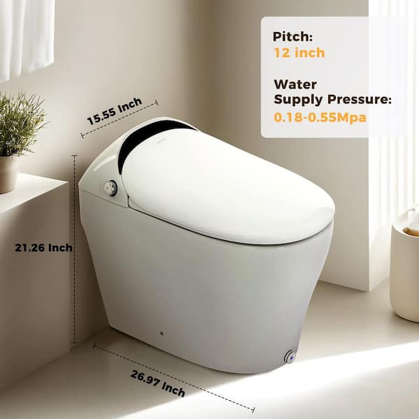 1.0 GPF White Elongated Smart Toilet Bidet with Auto Open/Close, Auto Flush, Heated Seat, Warm Air Dryer and Foot Sensor