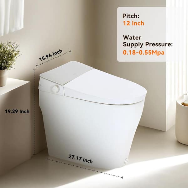 1.28GPF White Elongated Smart Toilet Bidet with Auto Open/Close, Auto Flush, Heated Seat, Warm Air Dryer and Foot Sensor