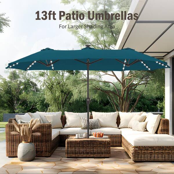 13 ft. Steel Market 8-Color Solar LED Lights Patio Umbrella in Lyons Blue