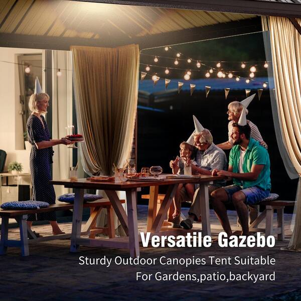 14 ft. x 20 ft. Gakvanized Steel Hardtop Gazebo With Mosquito Net and Privacy Curtain