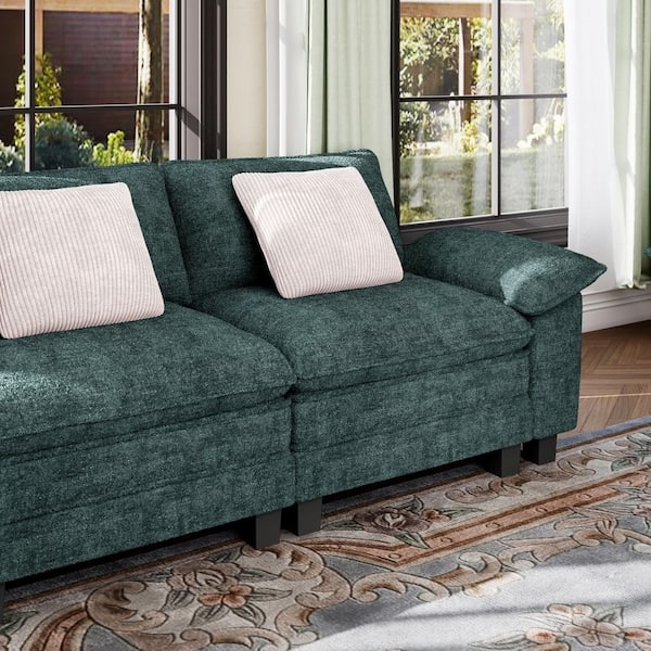 157.5 in. Flared Arm 5-Seat Chenille Modular Sectional Sofa in. Teal Blue with Throw Pillows and Ottoman for Living Room