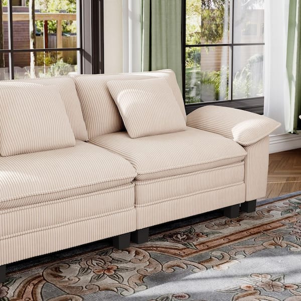 157.5 in. Flared Arm 5-Seat Corduroy Fabric Modular Sectional Sofa in. Beige with Throw Pillows and Ottoman