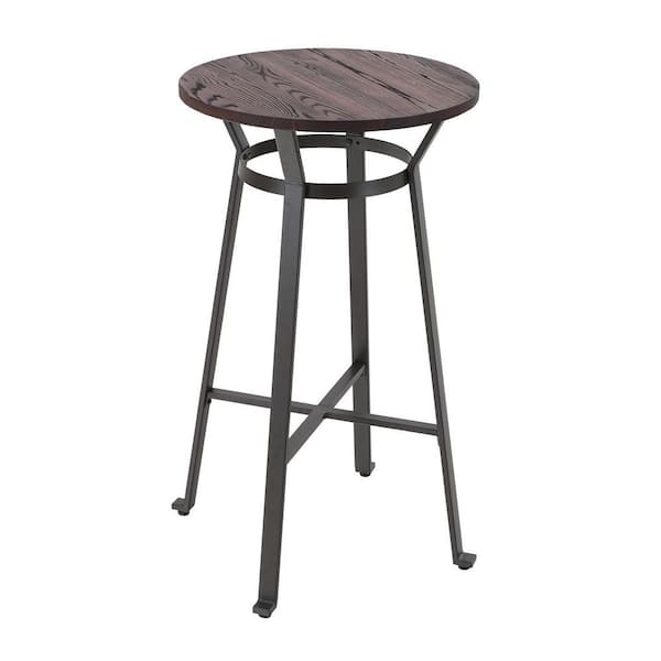 24 in. Black Metal Frame Round Bar Pub Table With Wood Top