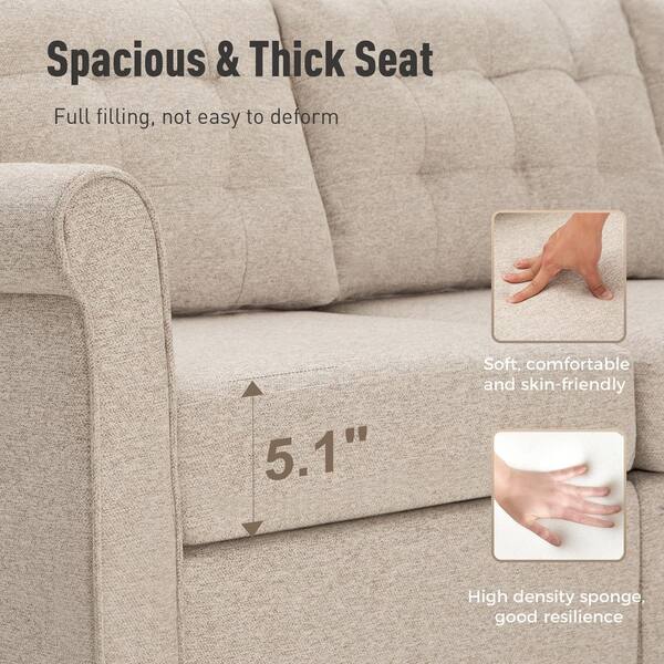 55 in. Modern Loveseat Linen Rectangle Shape Modular Sectional Sofa with Sturdy Wooden Frame in Beige