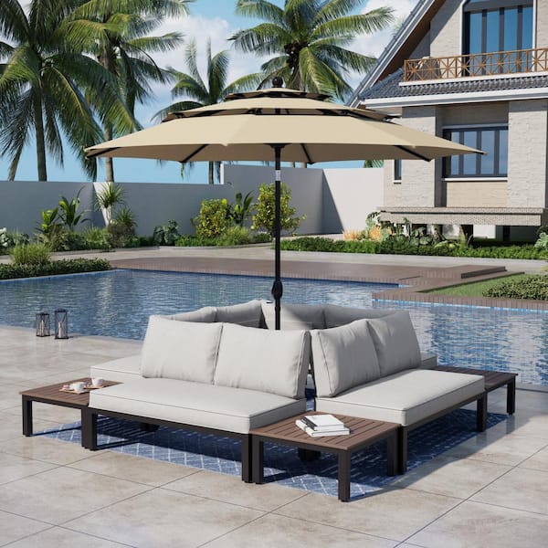 8 -Seat 8-Piece Metal Outdoor Patio Conversation Sectional -Seating Set with Light Gray Cushions and 4-Coffee Tables