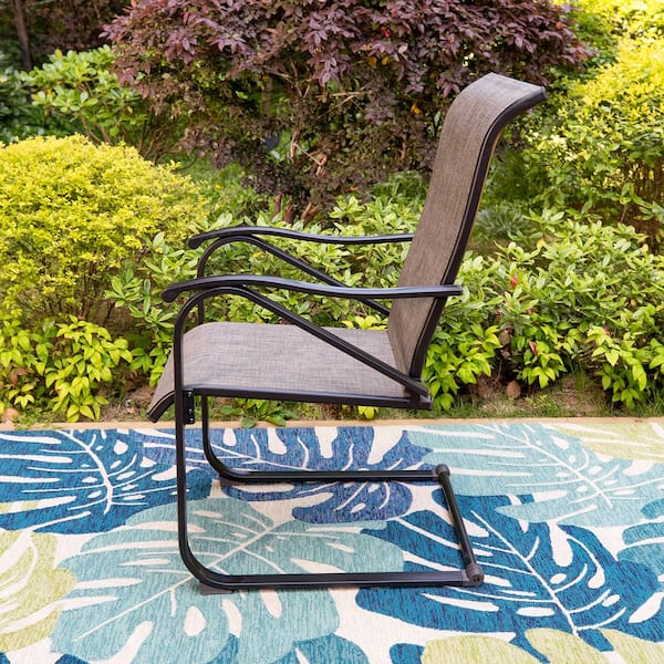 Black C-Spring Textilene Metal Patio Outdoor Dining Chair (2-Pack)