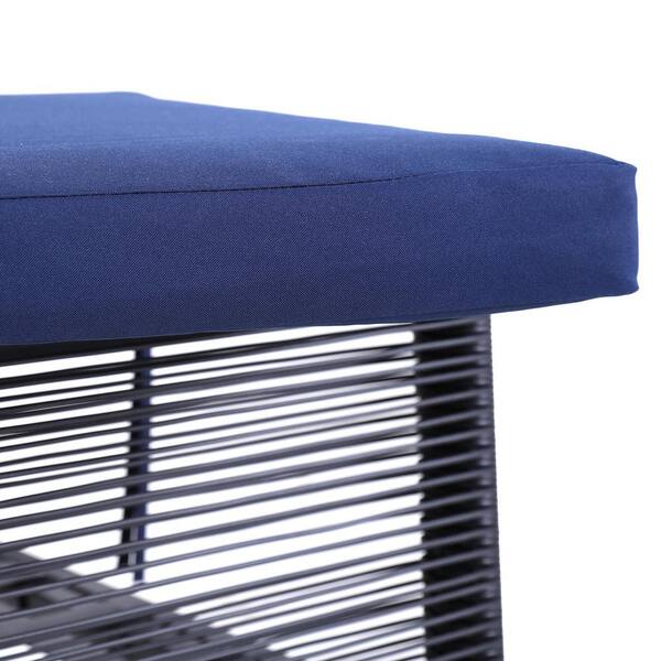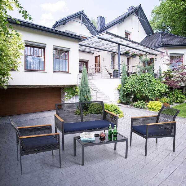 Black Frame 4-Piece Outdoor Black Steel Frame Conversation Set with Blue Cushions