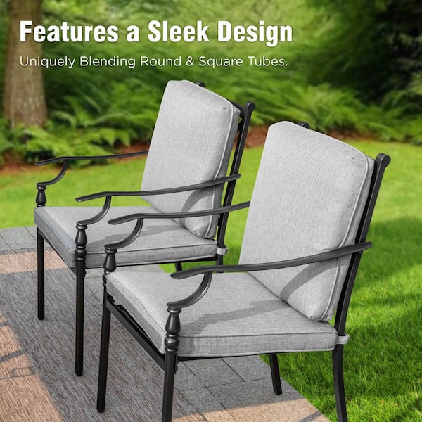 Black Metal Gourd-shaped Design Patio Outdoor Dining Chair with Gray Cushion (2-Pack)