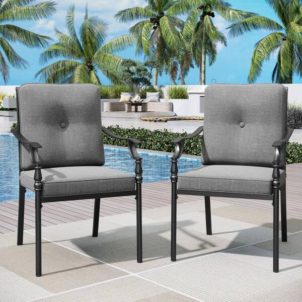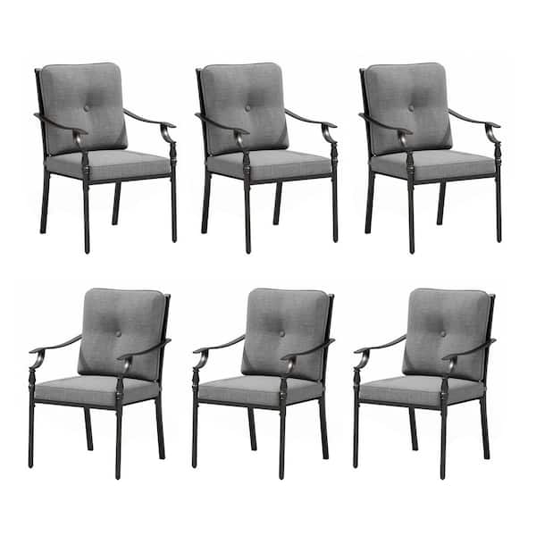 Black Metal Gourd-shaped Design Patio Outdoor Dining Chair with Gray Cushion (6-Pack)