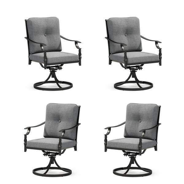 Black Metal Swivel Gourd-shaped Design Patio Outdoor Dining Chair with Gray Cushion (4-Pack)