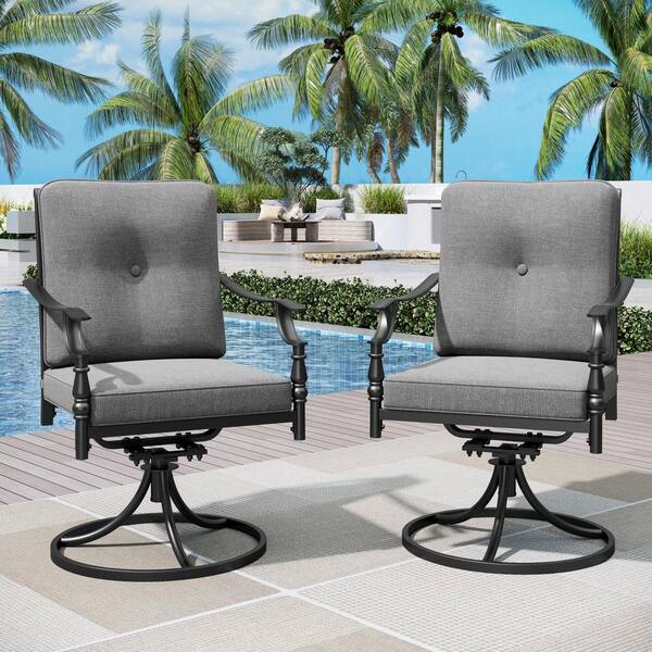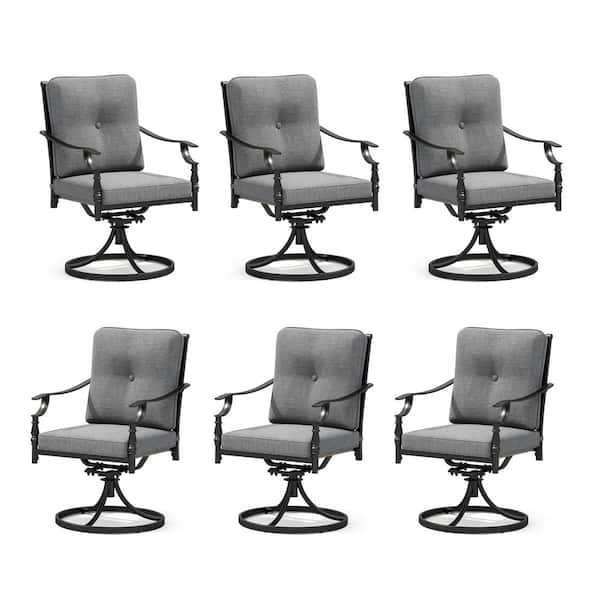 Black Metal Swivel Gourd-shaped Design Patio Outdoor Dining Chair with Gray Cushion (6-Pack)