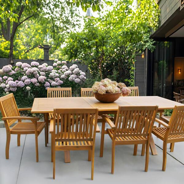 Brown 9-Piece Outdoor Dining Set with Acacia Wood Extendable Table and Acacia wooden Chairs