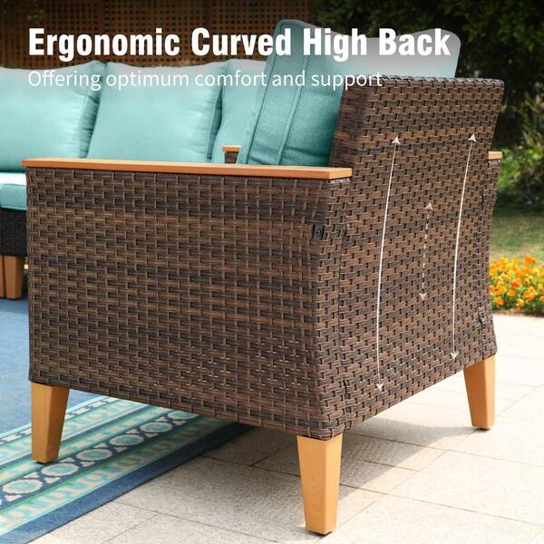 Brown Rattan Wicker 10 Seat 10-Piece Steel Patio Outdoor Sectional Set with Blue Cushions