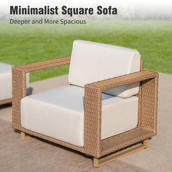 Brown Rattan Wicker 6 Seat 6-Piece Steel Outdoor Patio Conversation Set with Beige Cushions and 2 Ottomans