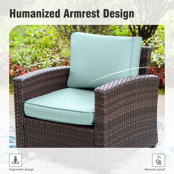 Brown Rattan Wicker 9 Seat 6-Piece Steel Outdoor Patio Conversation Set with Blue Cushions and 2 Ottomans