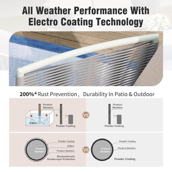 Gray Wicker Rattan 4 Seat 5-Piece Steel Outdoor Patio Conversation Sectional Set with Beige Cushions and Coffee Table