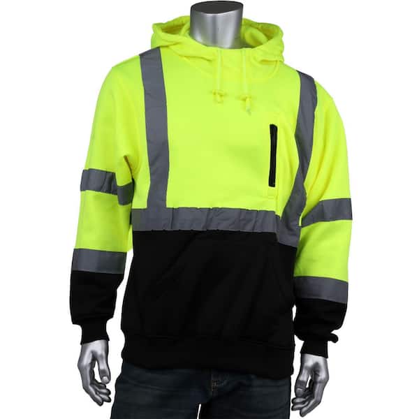 Men's 2X-Large Lime Yellow ANSI Type R Class 3-Hooded Pullover Sweatshirt with Black Bottom