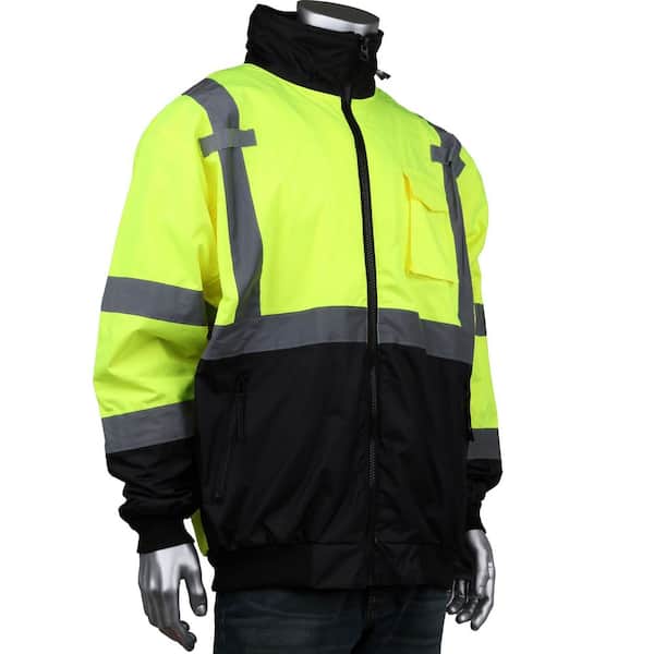 Men's Large ANSI Type R Class-3 Value Yellow and Black Bottom Bomber Jacket