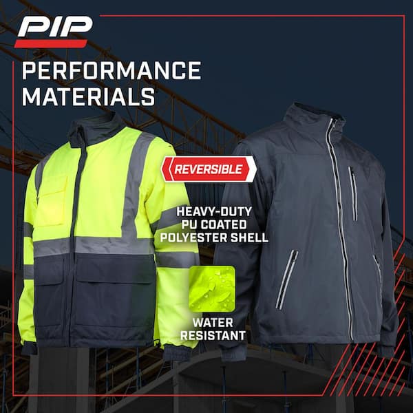 Men's Medium ANSI Type R Class 3 4-in-1 Reversible Hi Vis Yellow and Dark Gray Bottom Multi-Seasonal Windbreaker Jacket