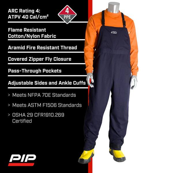 Men's Medium Navy Cotton/Nylon AR/FR Dual Certified Bib Overalls with 2-Pockets, 40 cal/cms 2
