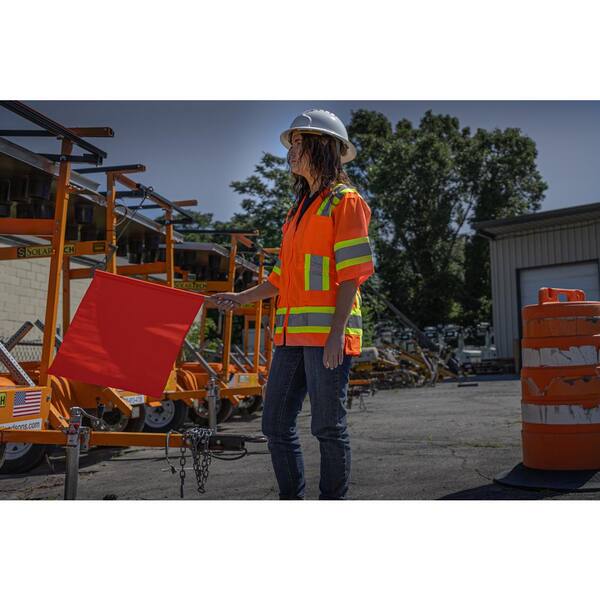 Women's Medium Hi Vis Orange 2-Tone ANSI Type R Class 3 Contoured Surveyor's Safety Vest with Mesh Back and (11-Pockets)