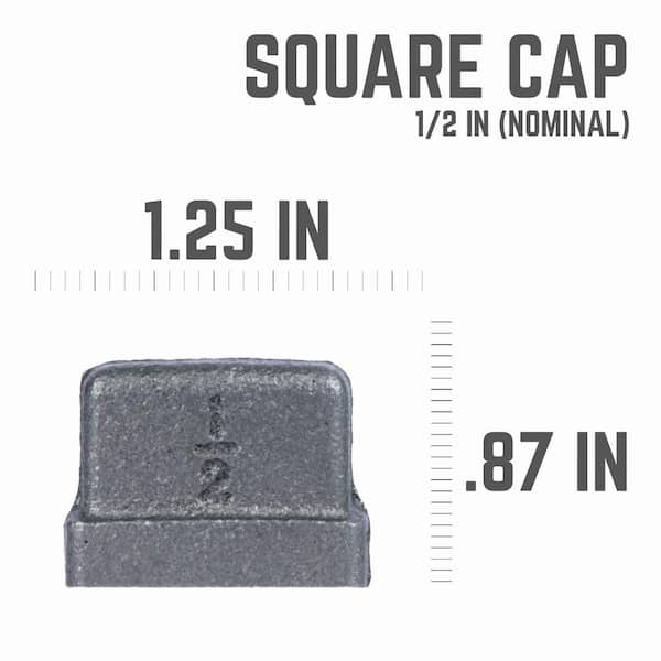 1/2 in. Black Malleable Iron Square Cap (4-Pack)