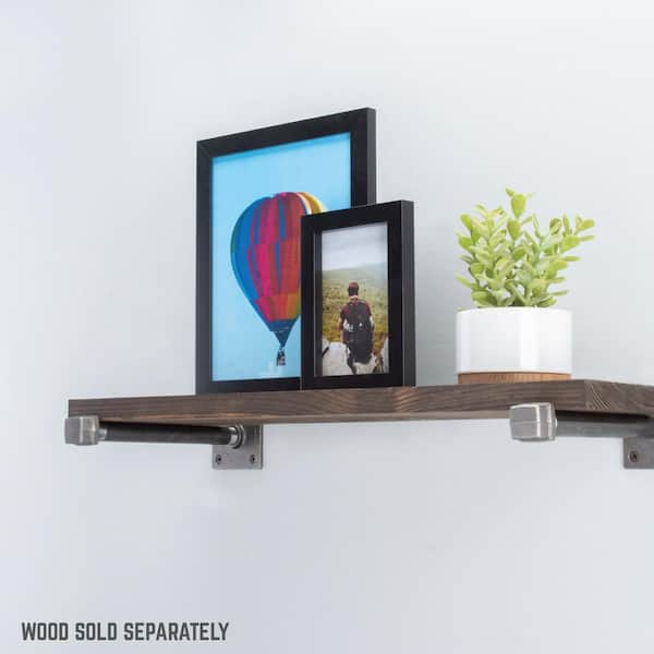 1/2 in. Black Steel Pipe 8 in. L Wall Mounted Square Shelf Bracket Kit
