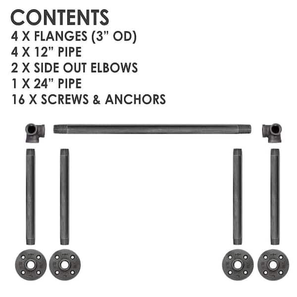 1/2 in. x 2 ft. L Black Pipe Quad Flange Wall Mounted Clothing Rack Kit