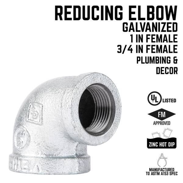 1 in. x 3/4 in. Iron Galvanized 90° FPT x FPT Reducing Elbow Fitting (10-Pack)
