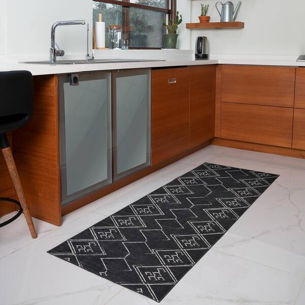 Aspen Black Creme 2 ft. 8 in.. X 8 ft. Machine Washable Tribal Moroccan Bohemian Polyester Non-Slip Backing Area Rug