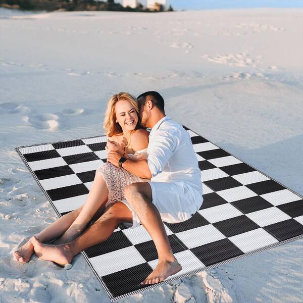 California Black and White 8 ft. x 10 ft. Folded Reversible Recycled Plastic Indoor/Outdoor Area Rug-Floor Mat