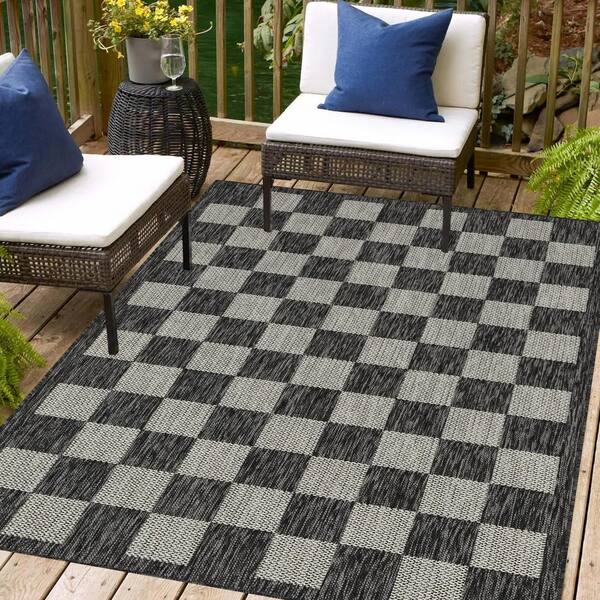 Daisy Black and Ivory 8 ft. x 10 ft. Indoor/Outdoor Area Rug