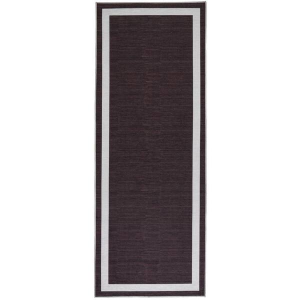 Everest Brown Creme 2 ft. 8 in. x 8 ft. Machine Washable Geometric Modern Border Polyester Non-Slip Backing Area Rug