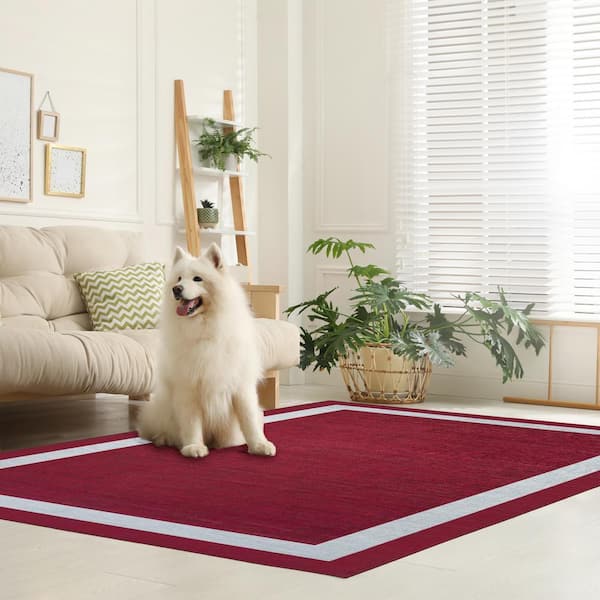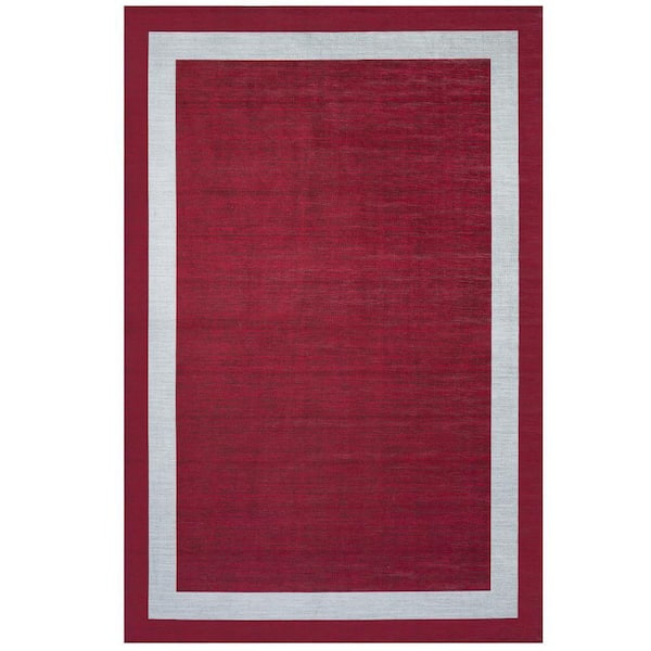 Everest Burgundy Creme 5 ft.4 in.x8 ft. Machine Washable Geometric Modern Border Polyester Non-Slip Backing Area Rug