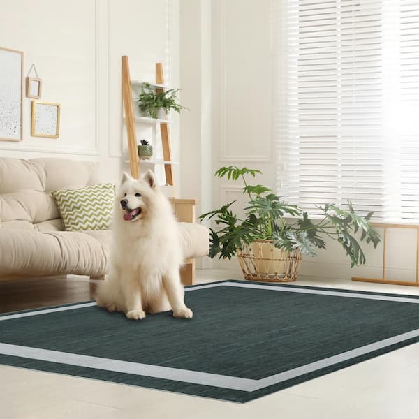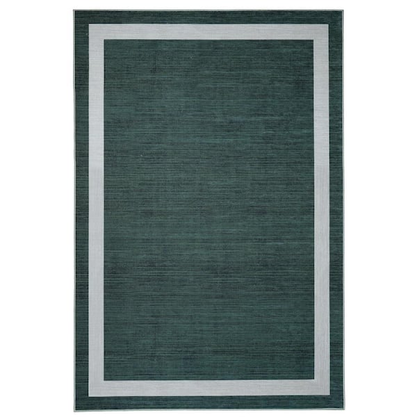 Everest Green Creme 5 ft. 8 in. x 9 ft. Machine Washable Geometric Modern Border Polyester Non-Slip Backing Area Rug