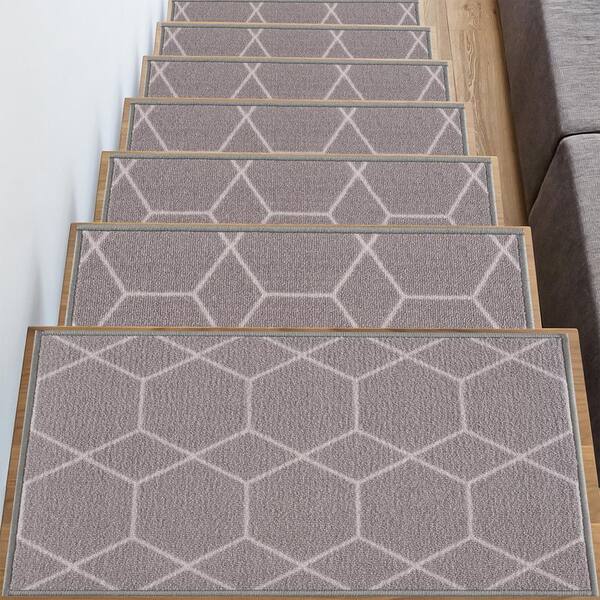 Hexagon Design Gray Color 8.5 in. x 26 in. Polyamide Stair Tread Cover Set of 13