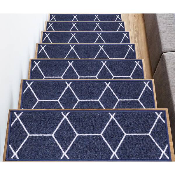 Hexagon Design Navy Color 8.5 in. x 26 in. Polyamide Stair Tread Cover (Set of 13)