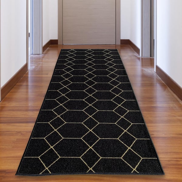 Hexagon Trellis Black 26 in. W x 12 ft. L RunnerRug/Stair Runner 26.4 sq. ft.
