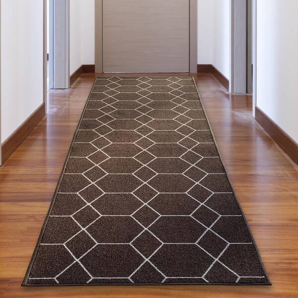 Hexagon Trellis Brown Color 31 in. Width x Your Choice Length Custom Size Roll Runner Rug/Stair Runner