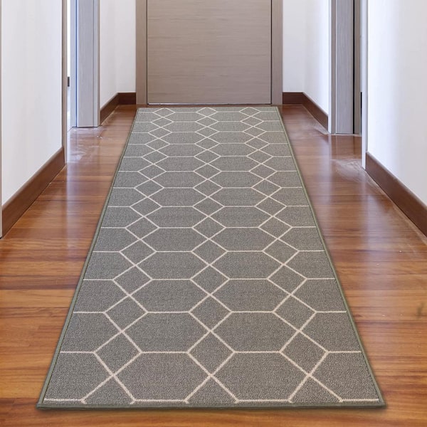 Hexagon Trellis Gray 26 in. W x 24 ft. L Runner Rug/Stair Runner 52.8 sq. ft.